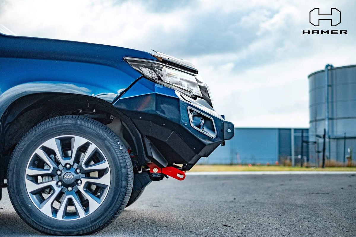 Introducing the Hamer King Series bull bar for Toyota Landcruiser Prado 150 Series (2018 – Present), the ultimate blend of ruggedness and style for your vehicle. Specifically designed as a bumper replacement bull bar, ensuring both protection and an imposing appearance against any unexpected event.